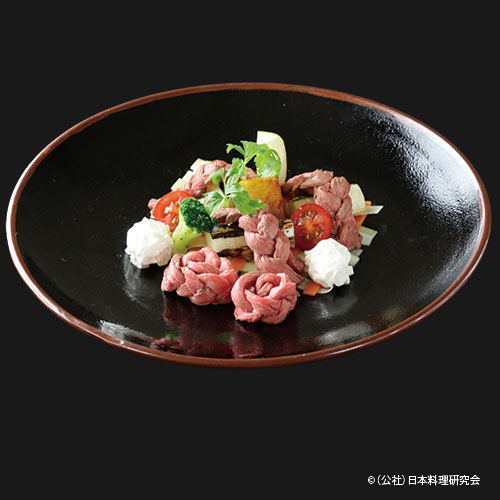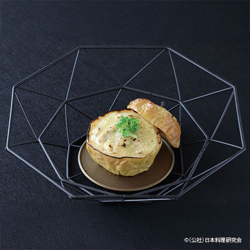 群馬県郷土料理の再構築です。蒸し物です。嬬恋キャベツと群馬のブランド豚のコラボにより、おこわ巻を新解…