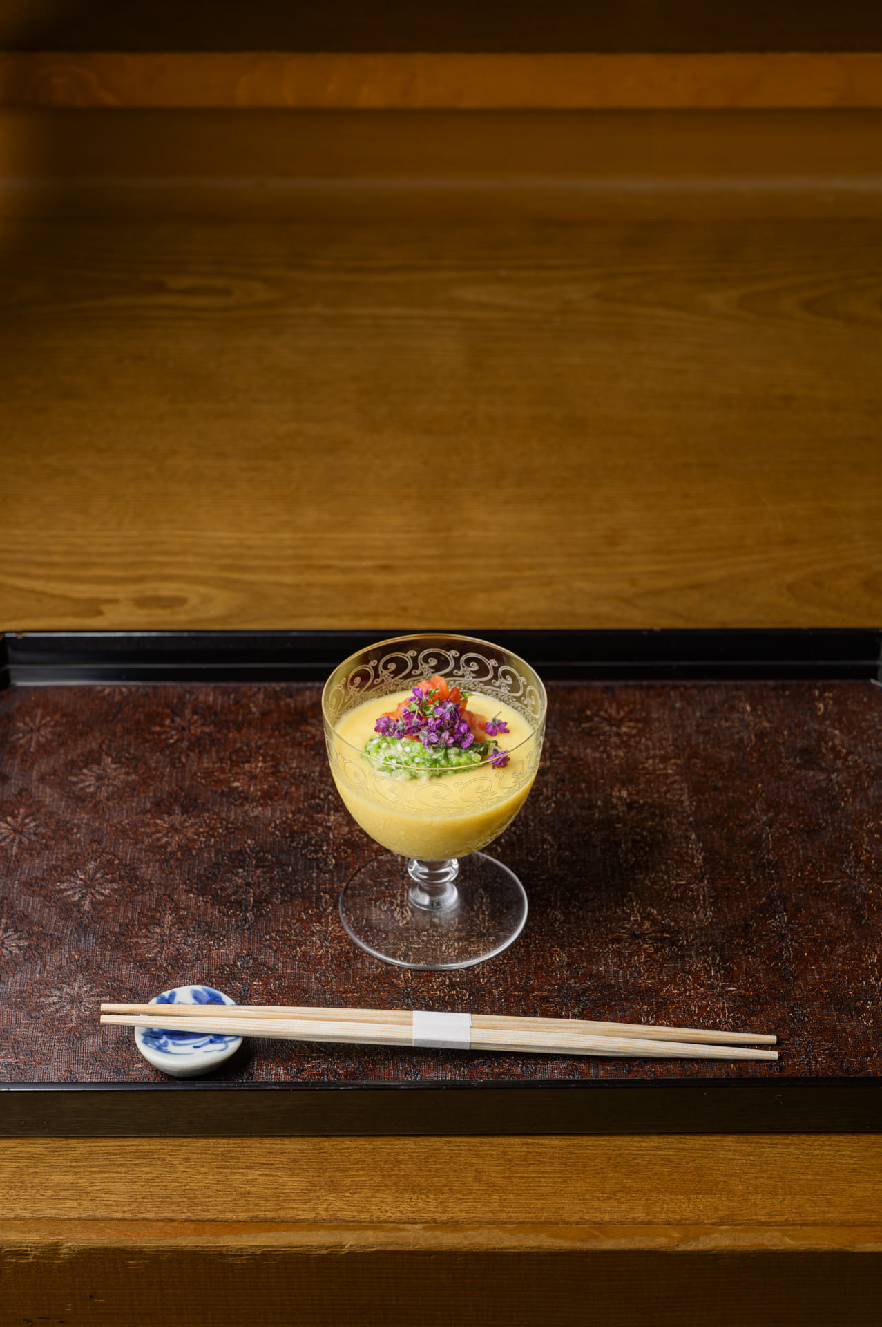 丁寧に裏漉しされた玉蜀黍の滑らかな口あたりと優しい甘味、彩りよく盛られた夏野菜が奏でる涼やかな余韻が…