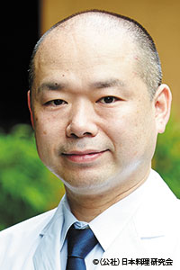 猪肉・秋野菜重ね焼は、まだ脂がのらない猪肉バラを使用します。柔らかく炊いて、白身から抽出した脂を塗って焼くことで足りない脂を補います。猪肉はしっかりともどして柔らかくし、調味料を入れてからは炊き過ぎないようにします。松茸、秋茄子などと共に重ね焼にすることで、柔らかな猪肉とやさしい味わいの秋野菜とのハーモニーを味わっていただきます。